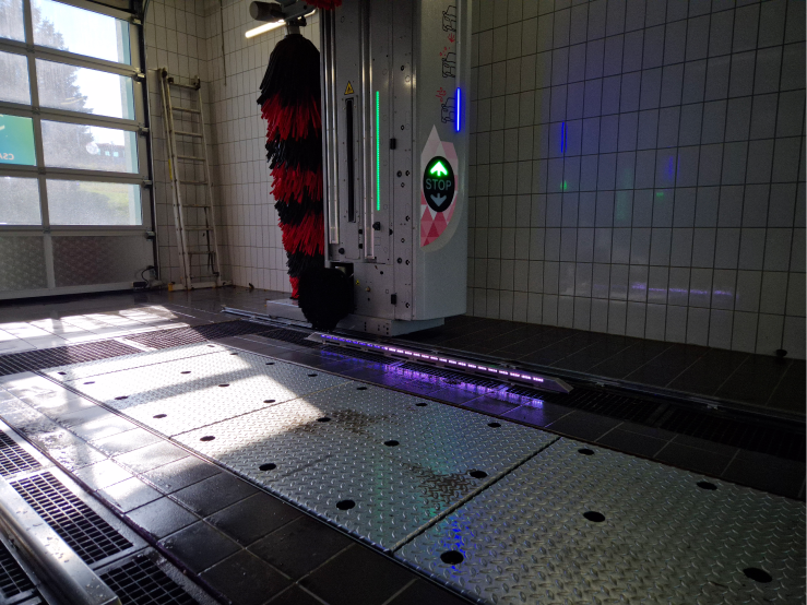 A washing and drying rollover equipped with 2 vertical brushes and 1 horizontal brush, all controlled by frequency converters for greater control and washing quality.